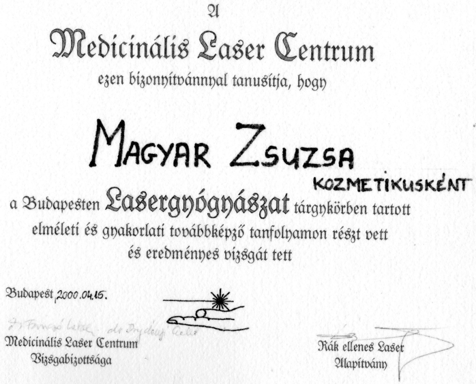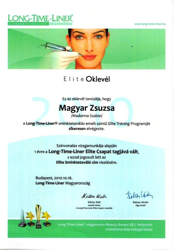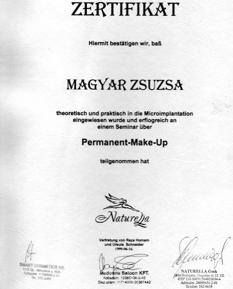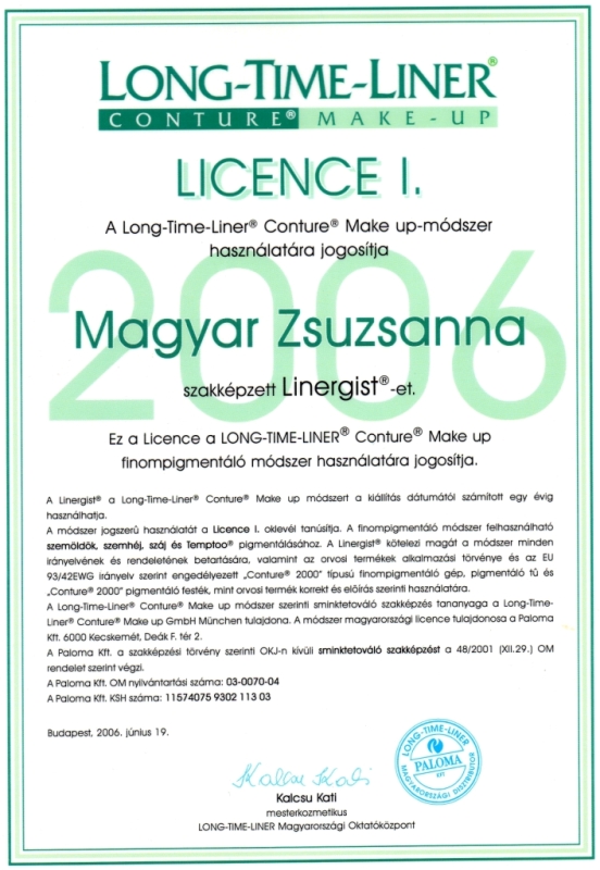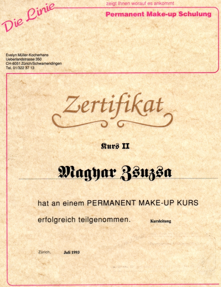 2003 – Sminktetoválás megbízott Stylo oktatója – Swiss Beauty Kft